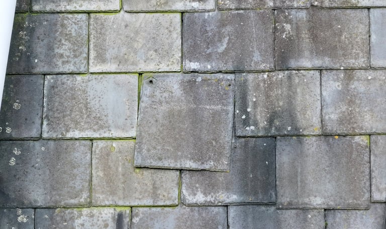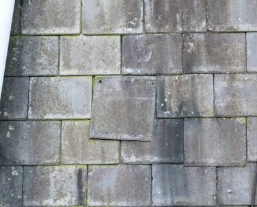 Imagery is captured from multiple angles and elevations, enabling the identification of slipped, fractured or missing tiles, mortar deterioration, defective pointing, ridge or hip tile displacement, leadwork splits, corrosion, lifting, blocked or misaligned gutters, surface wear, mechanical damage, water-ingress pathways, and any visible signs of structural deformation or sagging roof lines.